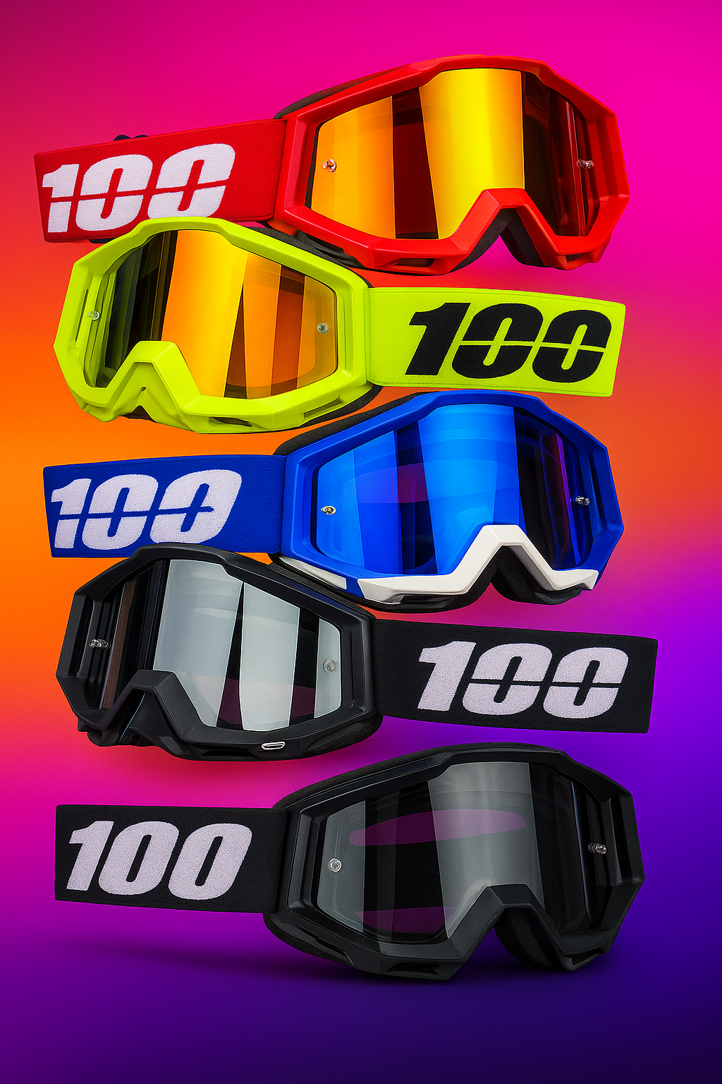 Os Óculos Off-Road Premium foram desenvolvidos para pilotos que desbloqueiam conforto, resistência e visão nítida em qualquer situação. Com lentes espelhadas anti-risco e design anatômico, oferecem a proteção ideal contra poeira, vento, lama e impactos.