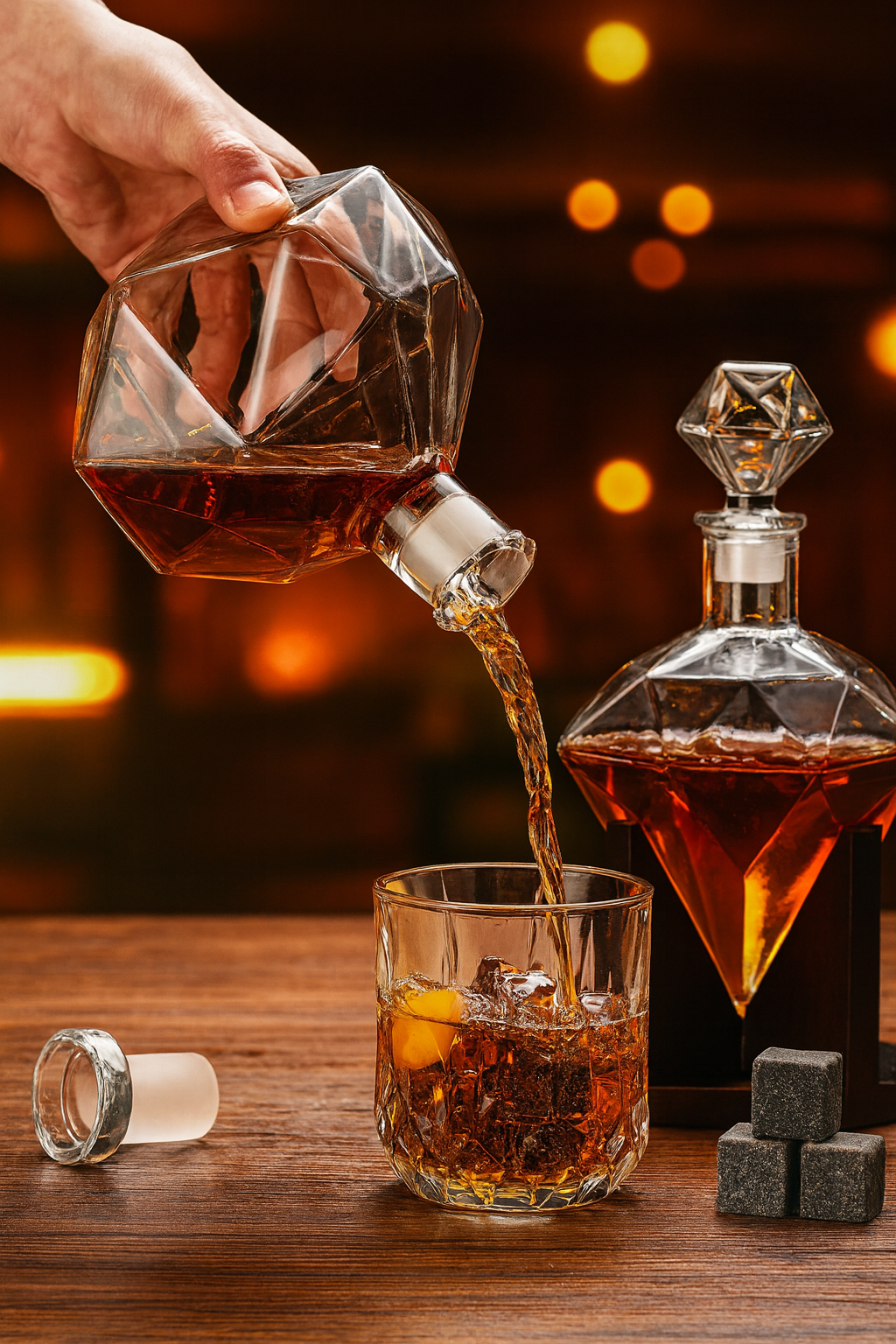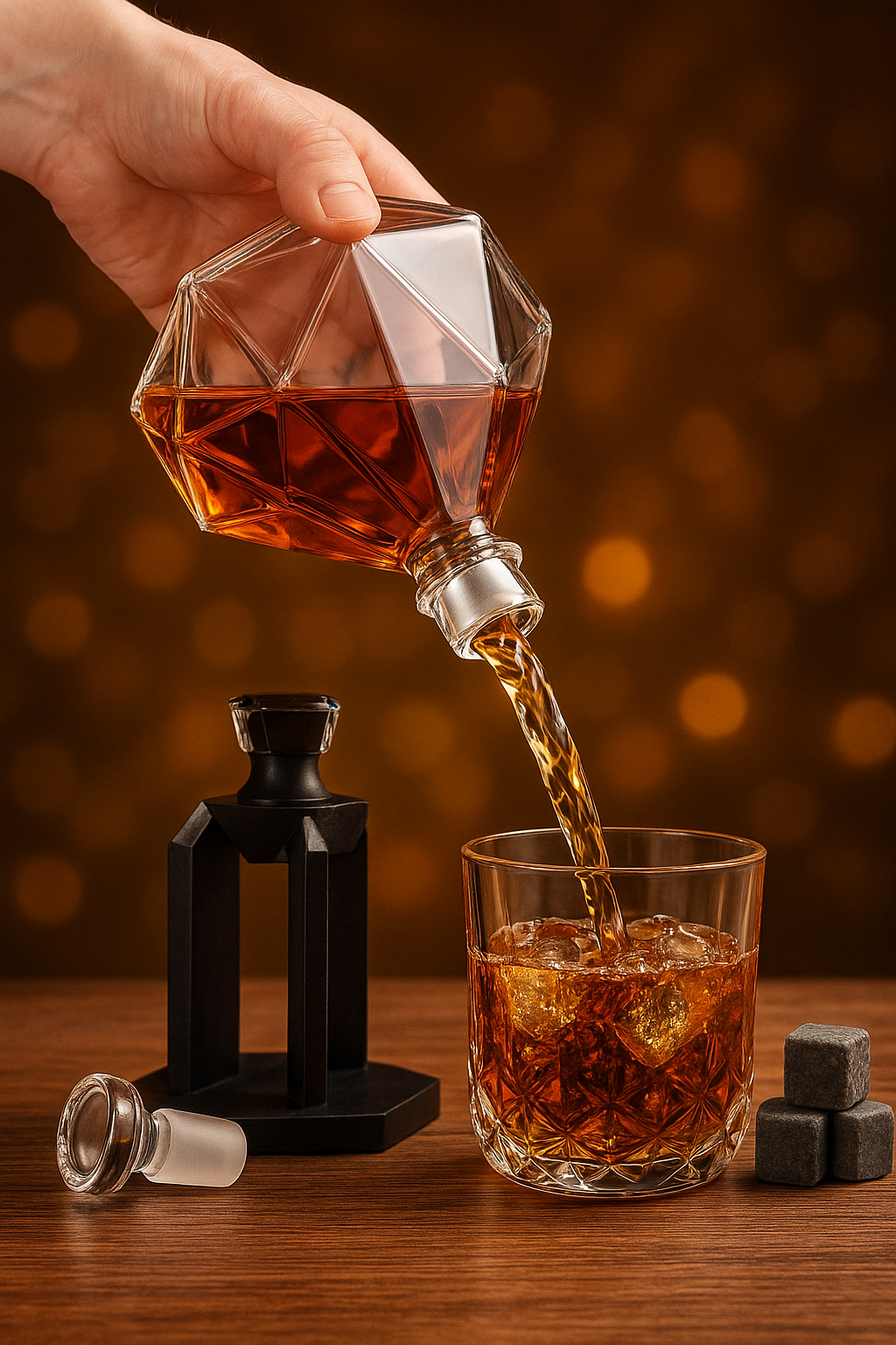 O Decantador Diamante Luxo é uma peça exclusiva, ideal para amantes de whisky, vinho, conhaque ou qualquer bebida especial. Com design inspirado no corte de um diamante, ele combina sofisticação e funcionalidade, tornando-se o destaque perfeito para seu bar ou sala de estar.